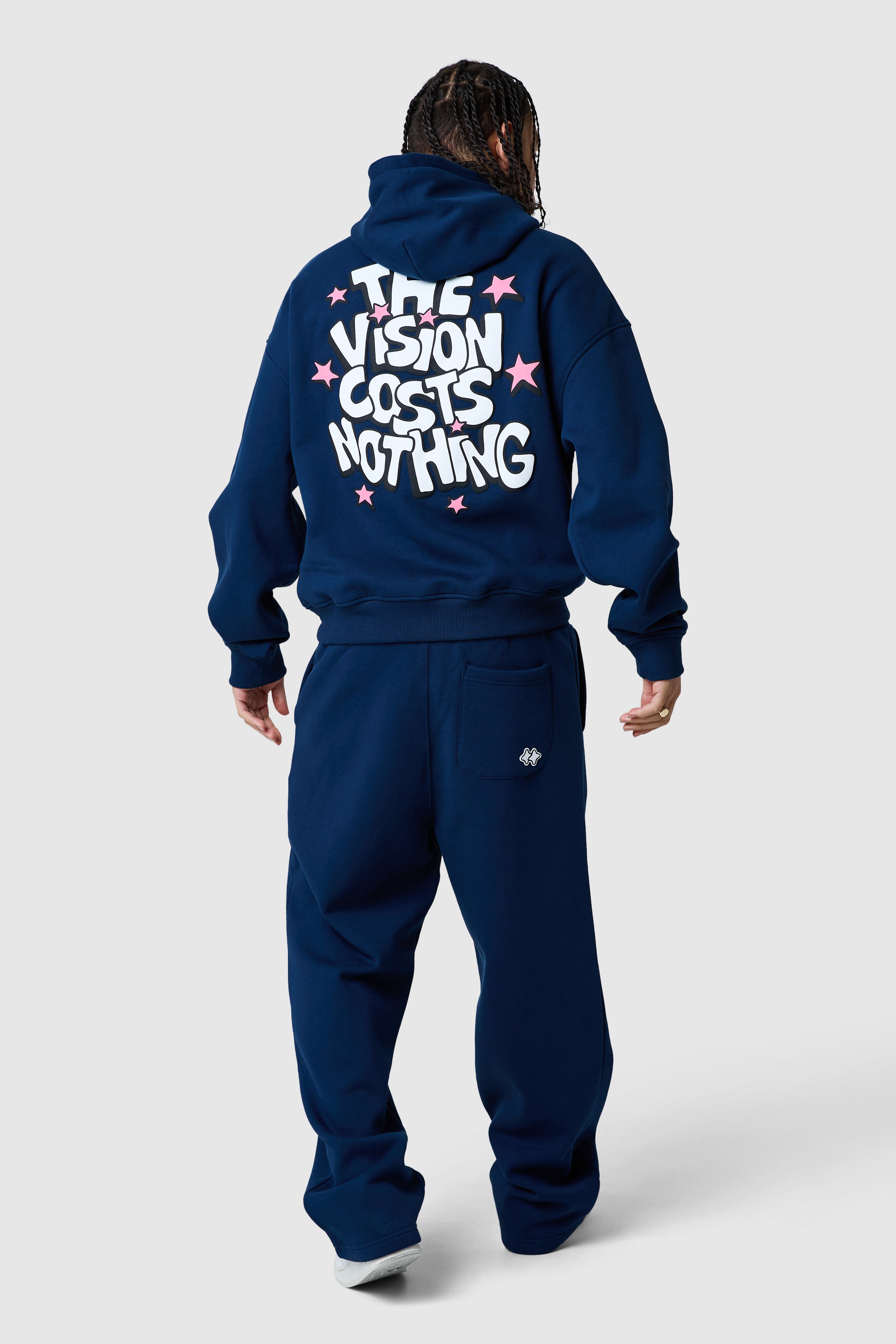 Designed with a relaxed, drop-shoulder fit, the Vision Costs Nothing Hood offers ultimate comfort. Featuring a bold puff print and ribbed cuffs and hem, it pairs perfectly with the matching fleece jogger for a complete look.