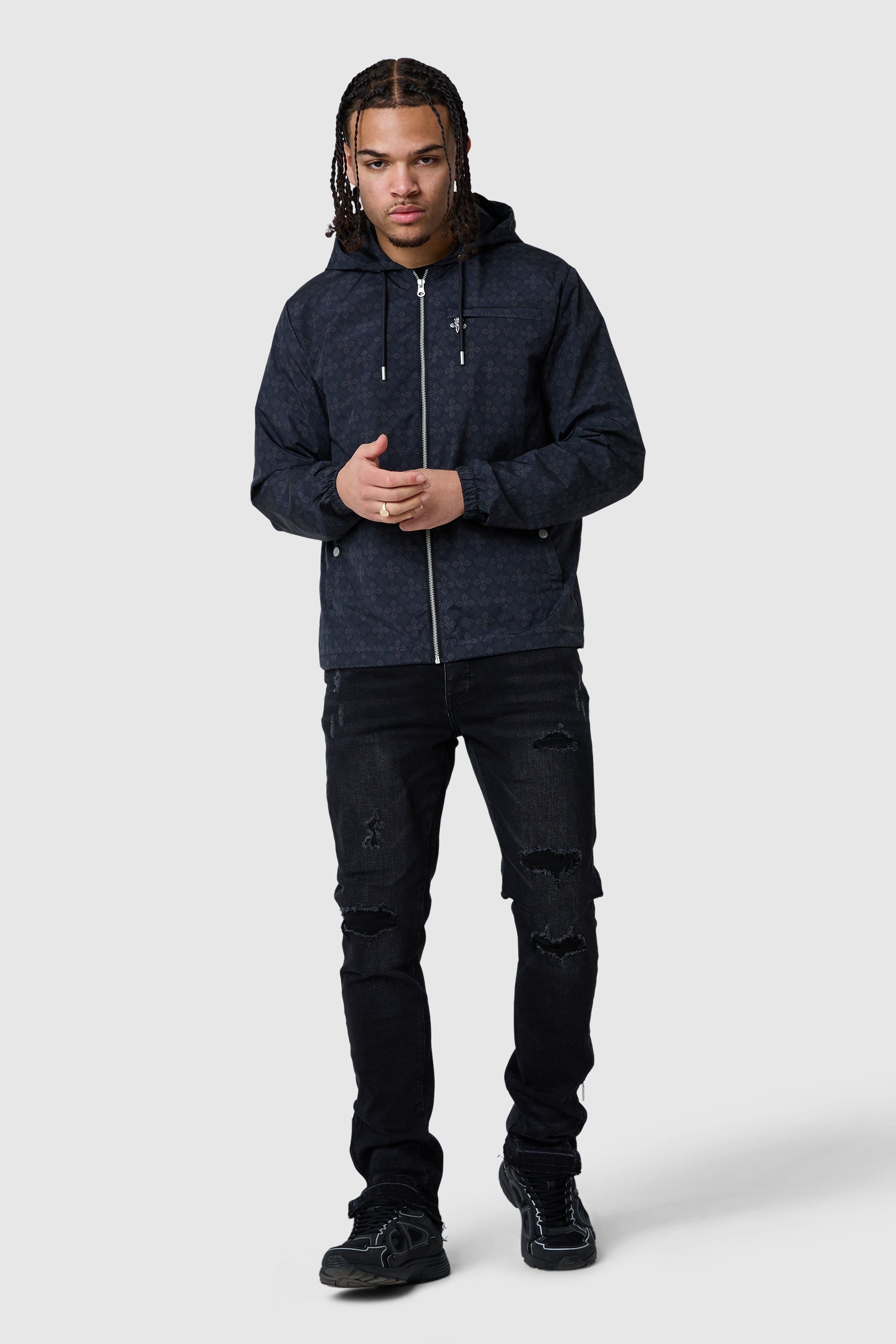 A statement jacket designed for modern streetwear. The Icon AOP Jacket in Black features a fully sublimated all-over print for standout style, with elasticated cuffs and adjustable drawcords to ensure a tailored, comfortable fit. Crafted for both function and fashion, it combines eye-catching design with practical detailing.