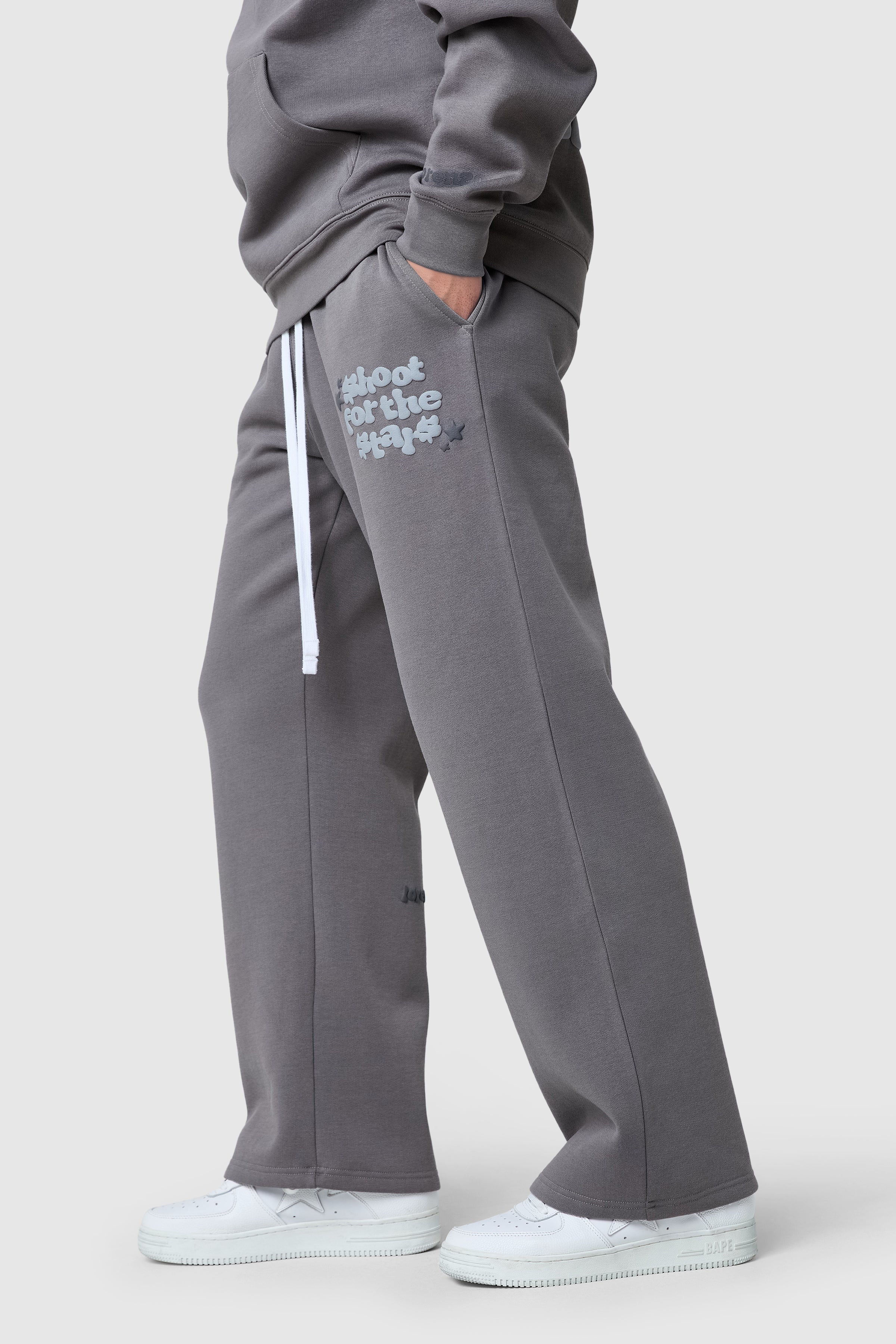 Introducing the Shoot For The Stars Tracksuit. Featuring a bold graphic puff print and ribbed cuffs and hem hood and a wide leg jogger, Shoot for the Stars is a new staple.