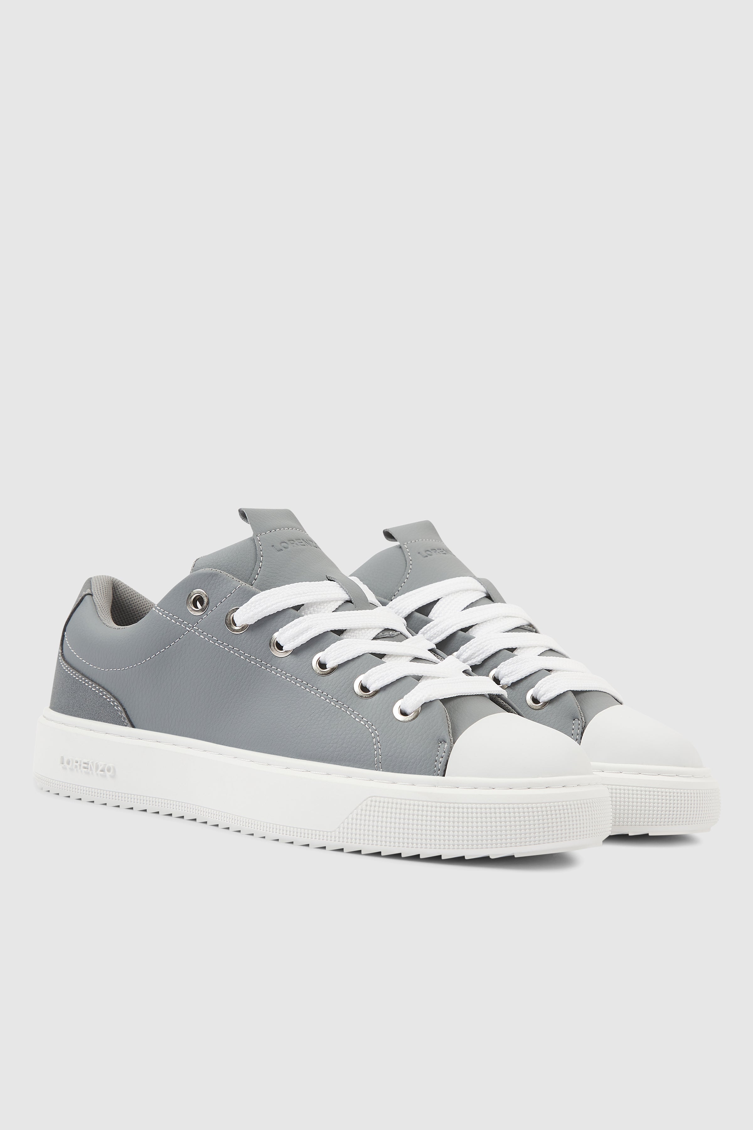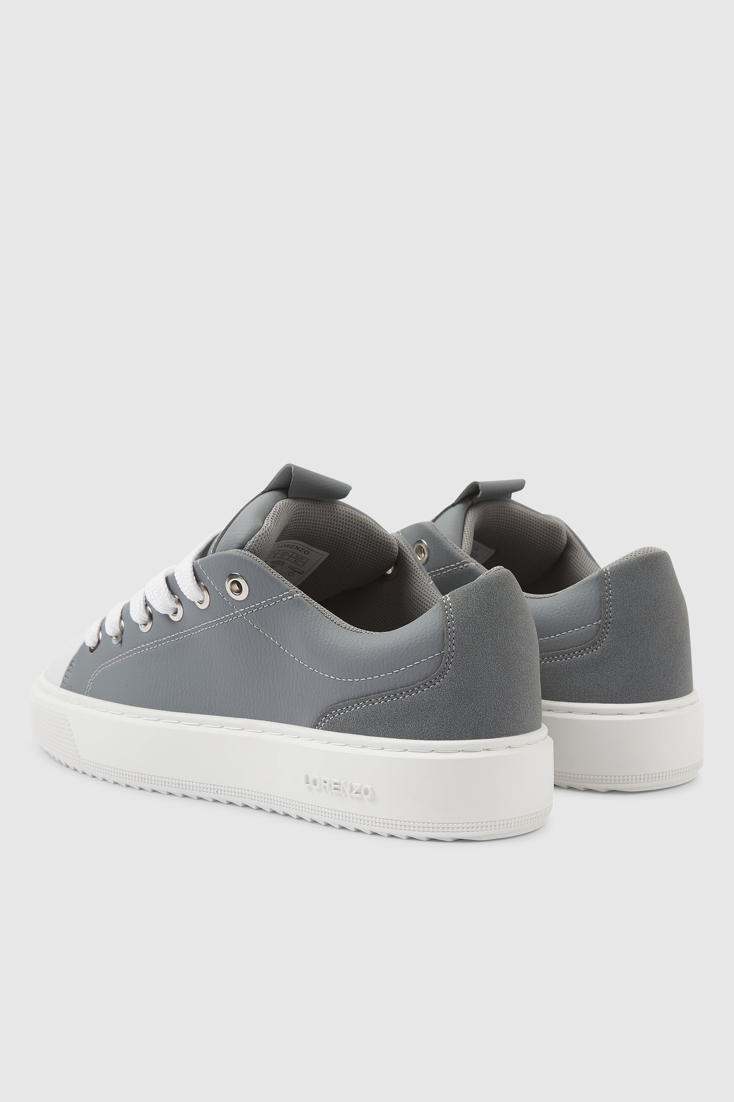 A clean, minimalist trainer with a sharp, structured profile. The Roma Trainer in Grey is crafted from smooth faux leather, delivering a refined finish with everyday durability. Subtle panel lines and contrast detailing enhance the streamlined silhouette, giving the style a modern, understated look.