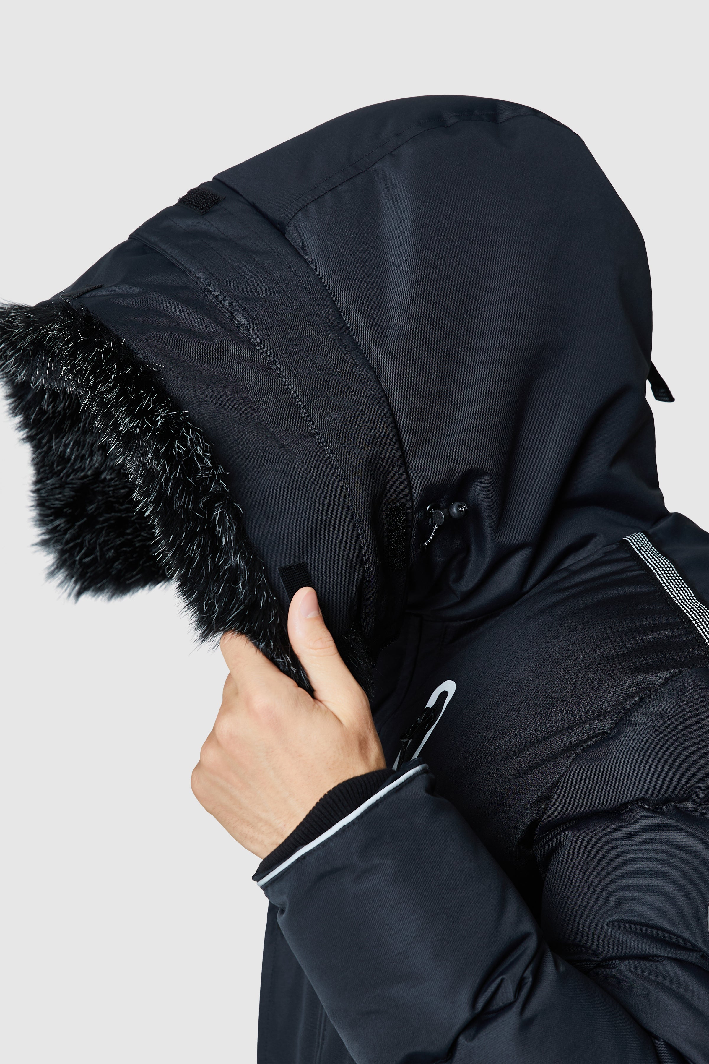 Built for cold weather city miles, the Eclipse 5.0 Jacket merges outdoor utility with elevated everyday style. Technical detailing meets considered design, with a warm faux fur three-piece hood, premium graphic lining and functional pocket layout for on-the-go storage. Reflective branding adds low-light visibility while double rib cuffs seal in heat when temps drop.