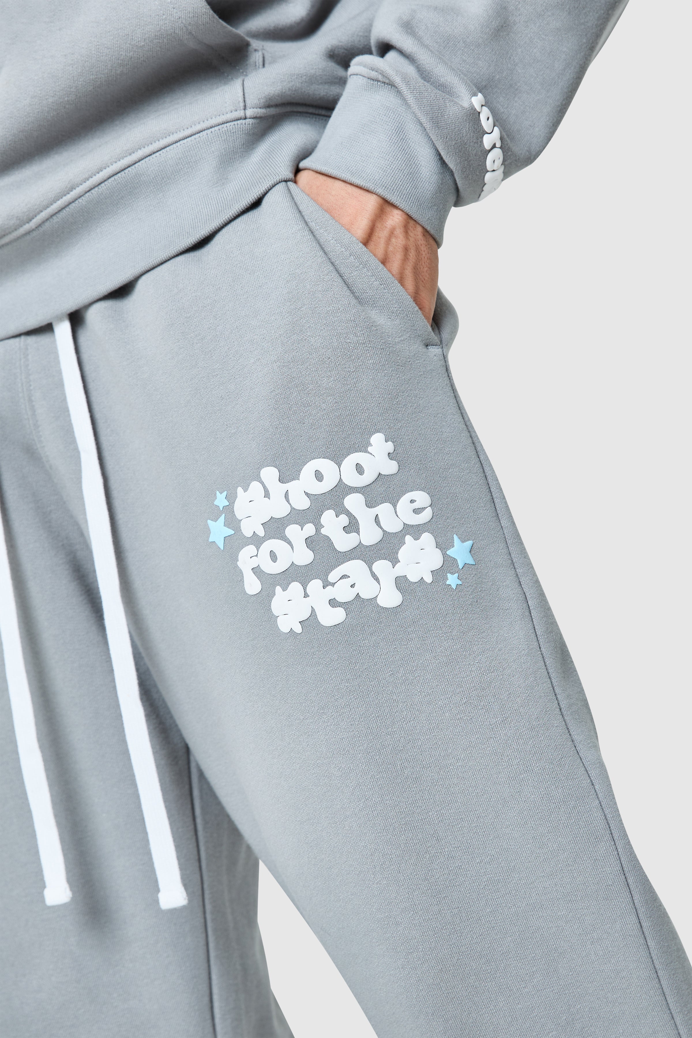 The Shoot For The Stars Jogger features a loose, flared fit with a bold graphic puff print, blending comfort and style effortlessly. Pair with the matching hood for a relaxed, complete look.