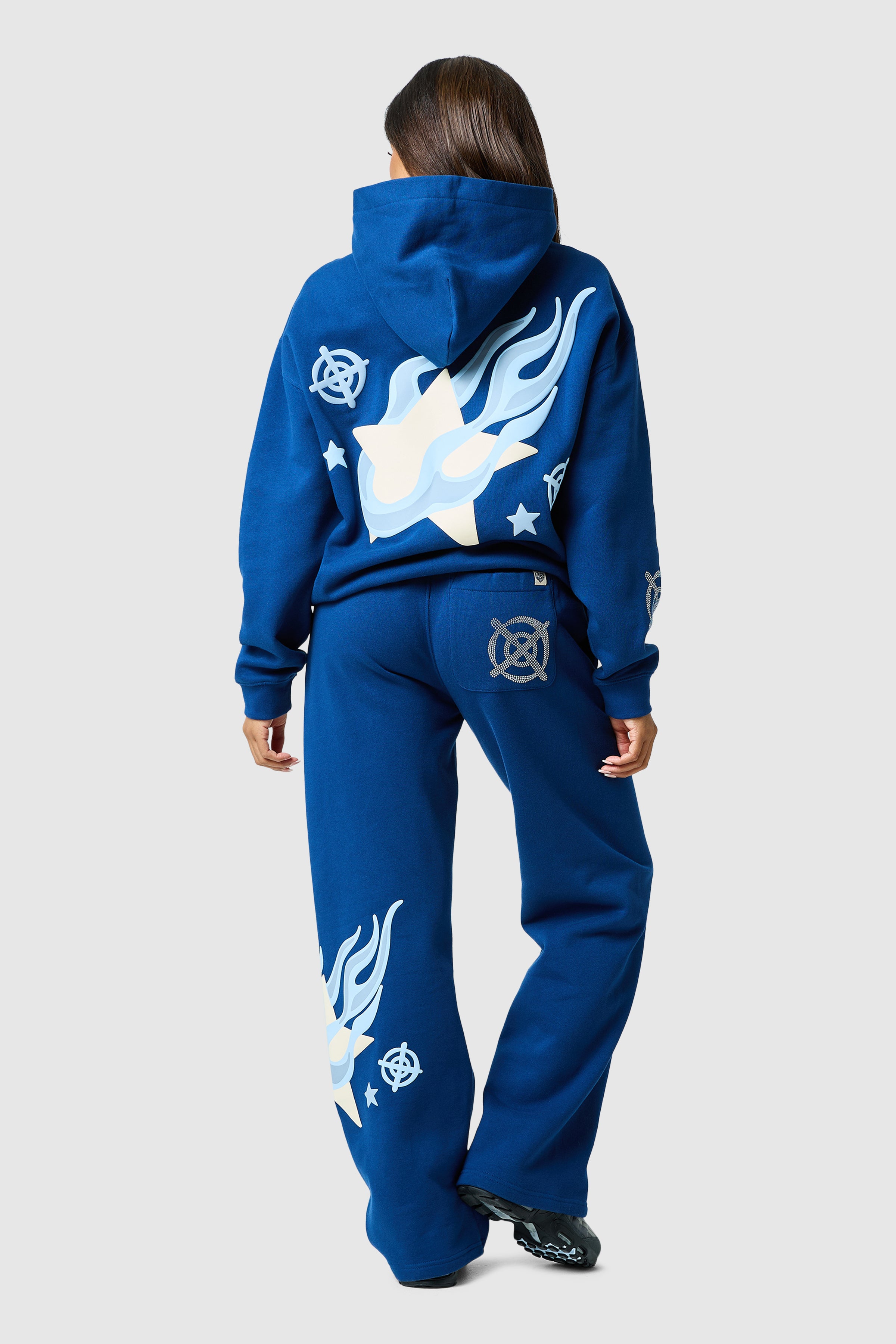 Introducing the Shoot For The Stars Tracksuit. Featuring a bold graphic puff print and ribbed cuffs and hem hood and a wide leg jogger, Shoot for the Stars is a new staple.
